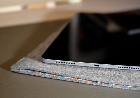 Gib bitte bei der Bestellung an, wenn du ein Case, Cover oder Tastatur benutzt. Wir fertigen die Hülle dann entsprechend größer. Auch einen Stift können wir berücksichtigen.